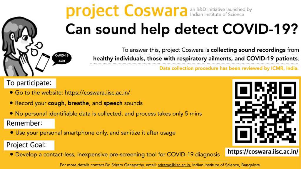 One such effort is also ongoing in the Bengaluru-based Indian Institute of Science (IISc). A group of researchers are trying to evaluate the possibility of COVID-19 diagnosis from just the respiratory sounds of the person. A paper documenting the early efforts by the group is posted as PDF